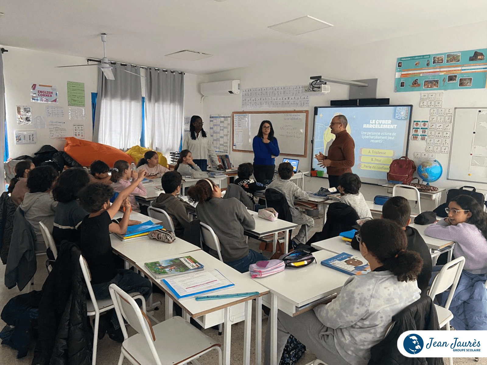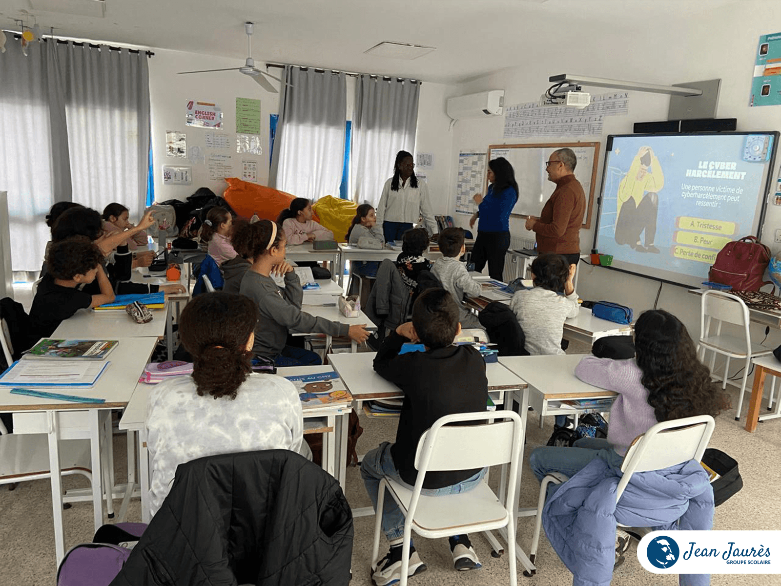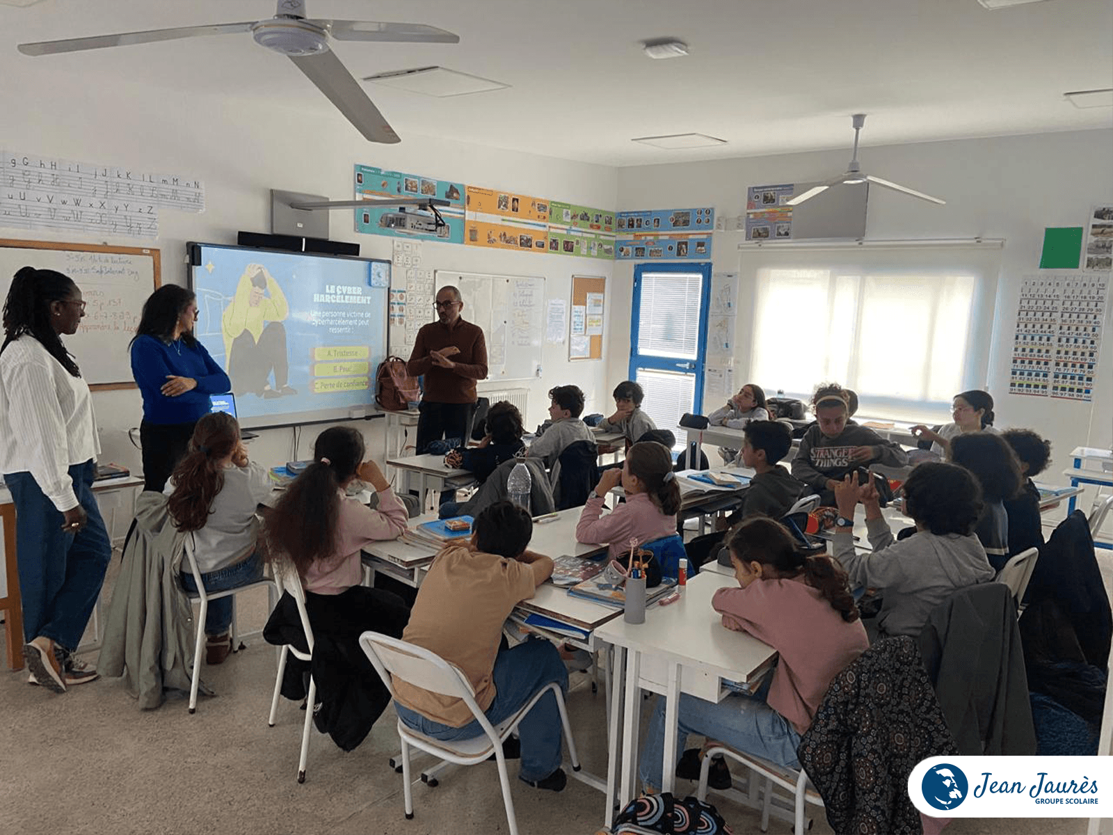 Pour accompagner cette réflexion, l’école a eu le plaisir d’accueillir Maître Tarek Hassine, avocat, ainsi que Marwa Khabzina, psychologue. À travers leurs interventions complémentaires, ils ont permis aux élèves d’aborder Internet sous différents angles : juridique, psychologique et citoyen.